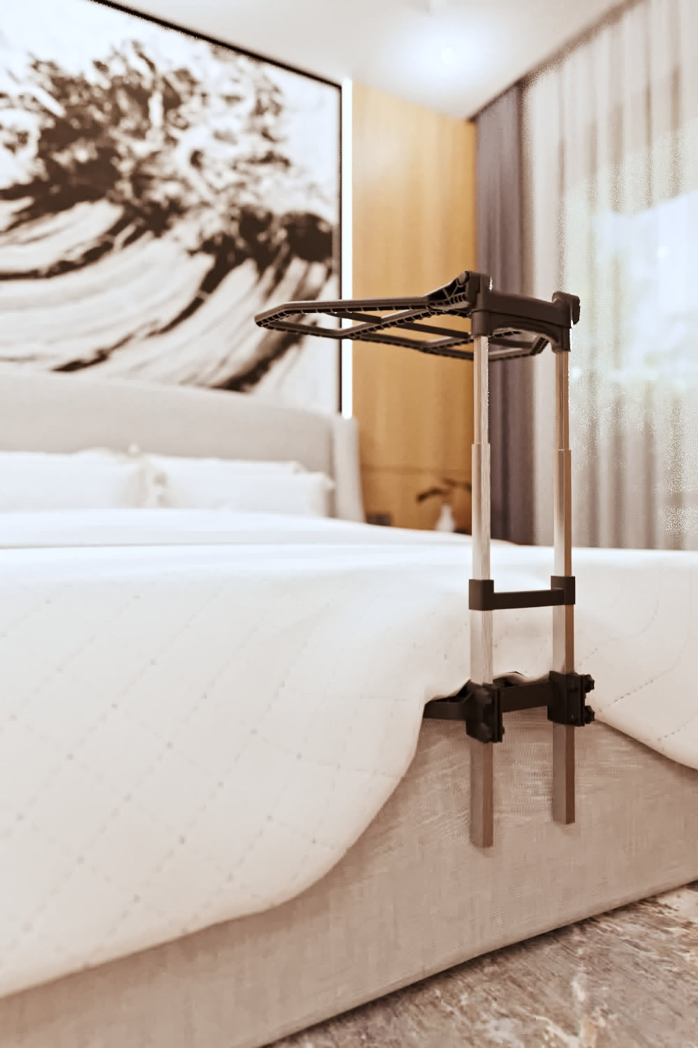 A discreet, elegant design that can be easily collapsed when not in use. Your bedroom remains your sanctuary.